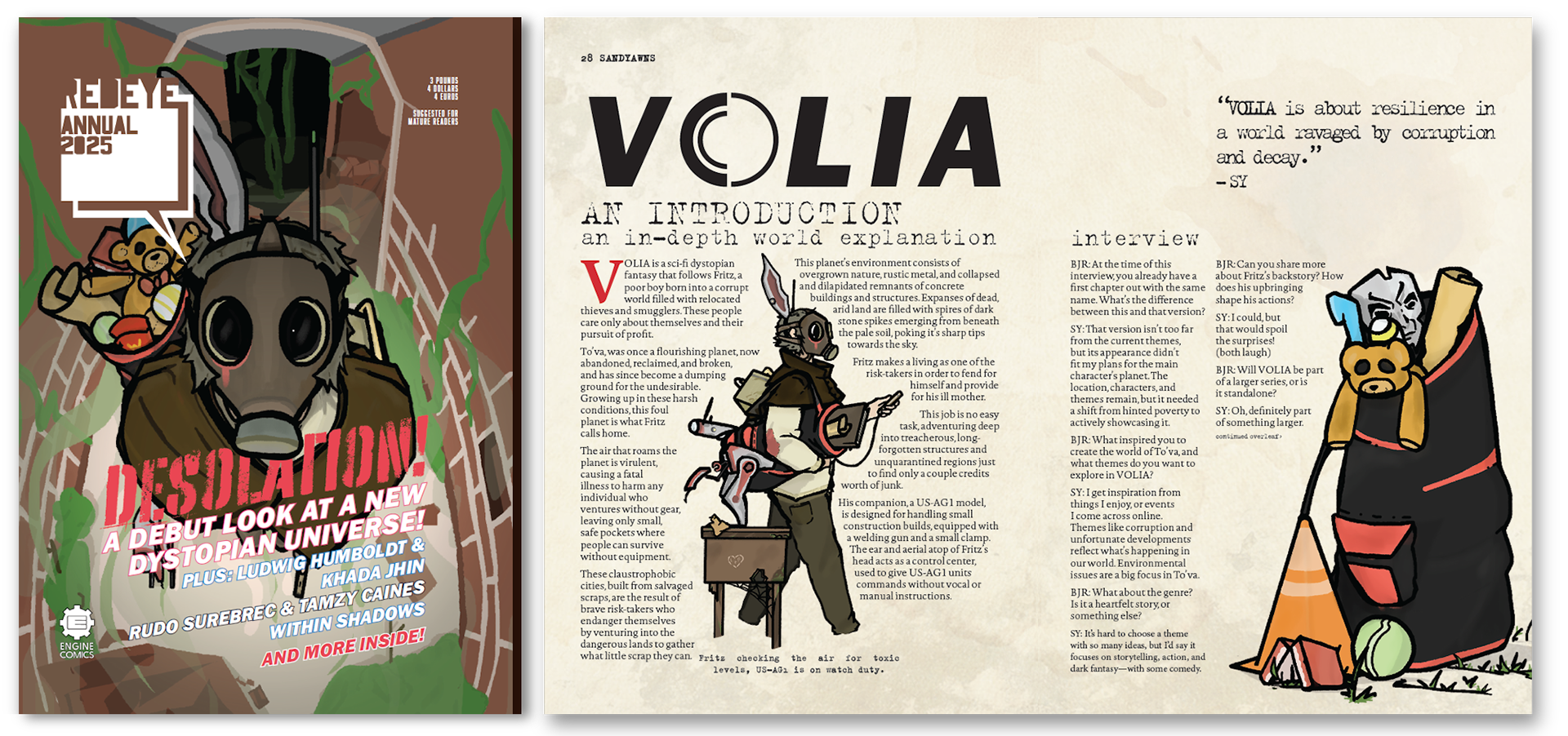 This collaboration is fake and serves as a study purpose to understand layouts and magazine styles. Magazine is owned by Engine Comics, a UK based independent sequential art publisher